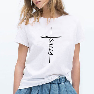 Christian Cross Print Tops Female T-Shirt