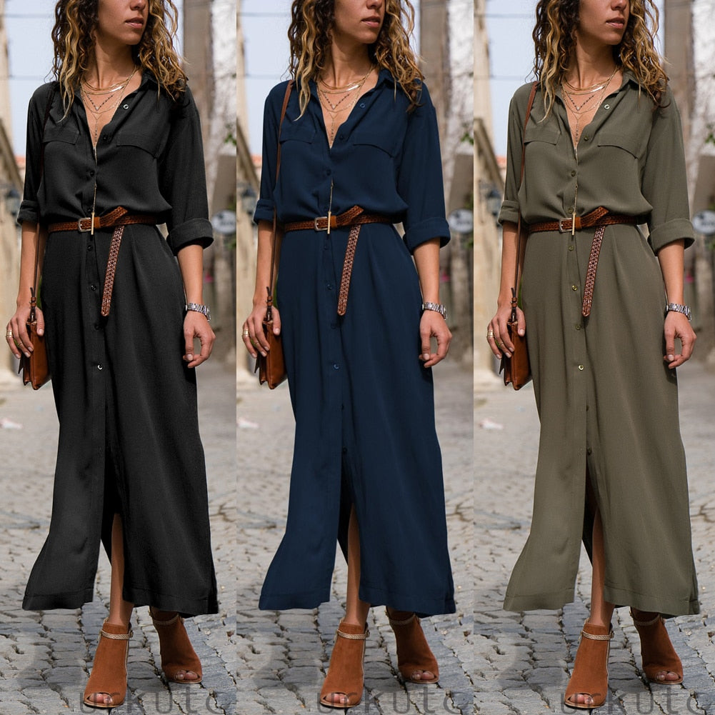 • 將圖片載入圖庫檢視器 Women Summer V Neck Boho Party Beach Dress Woman Solid  Color Long Maxi Dresses Ladies Holiday Casual Sundress Female Clothes